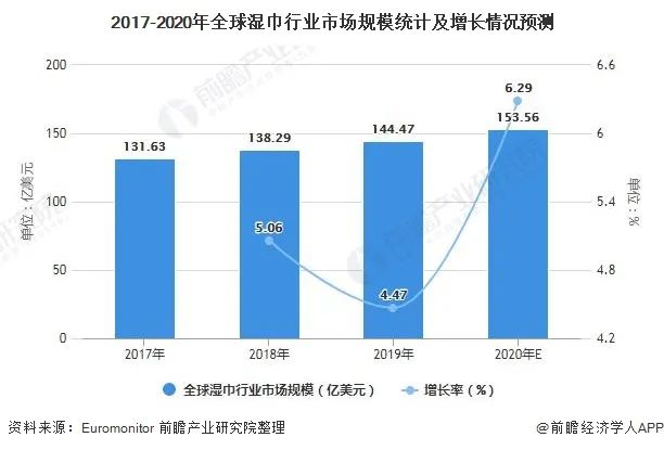 1、2020年全球湿巾行业市场规模将超150亿美元。