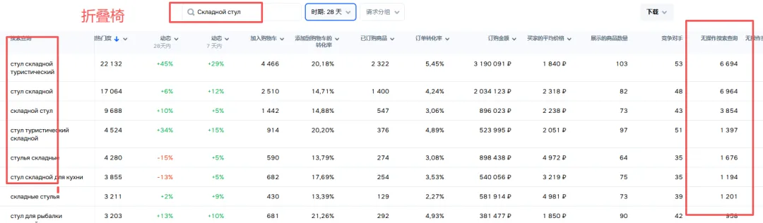 塔腰是精准词,比如“折叠椅”,搜索量少一些,但竞争也小了,可能只剩下五千个商品。