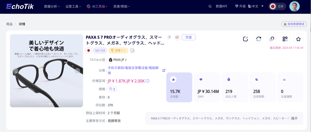 7天爆卖11000件!一款音频智能眼镜在日本TikTok走红