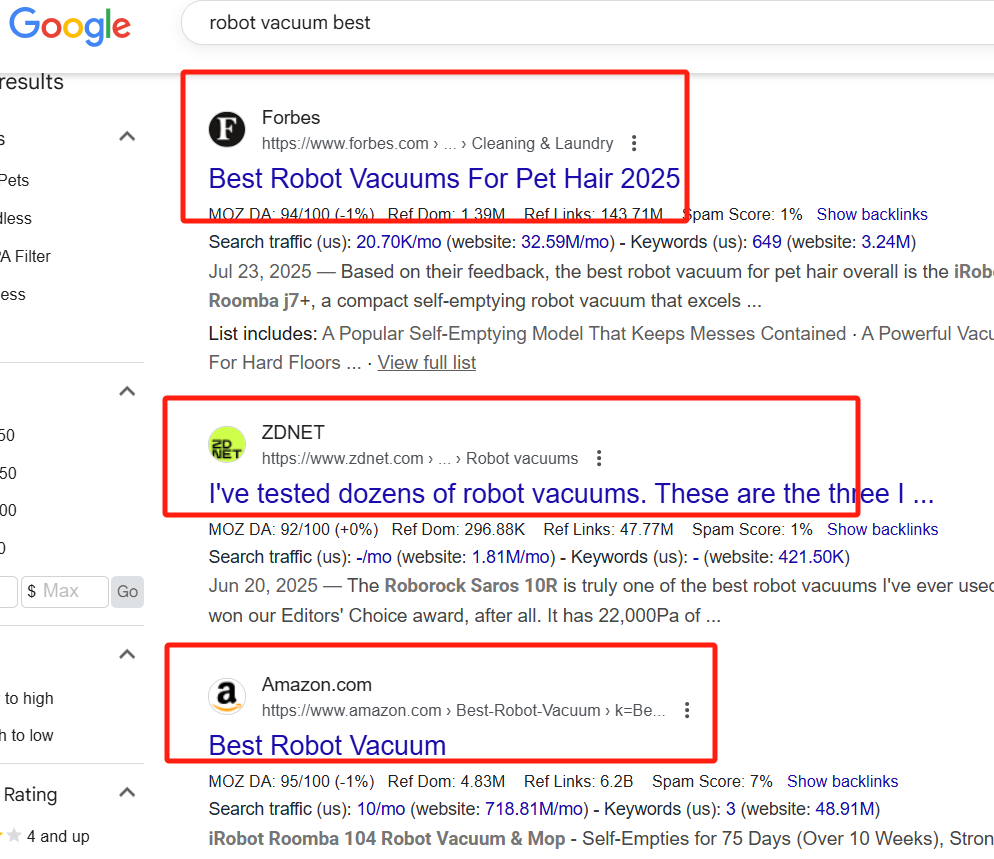 客户有在谷歌搜索类似于 Robot vacuum 或者 Robot vacuum
