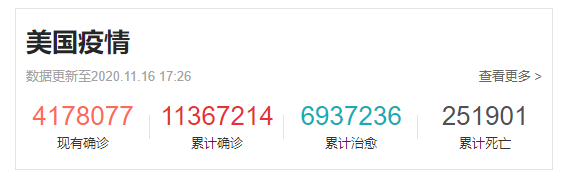 美国新冠肺炎累计确诊病例全球最多,超过1136万例,达到11367214例;累计死亡病例超过25.1万例,达到251901例。