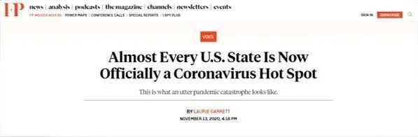 美国《外交政策》杂志网站当地时间11月13日发文指出,美国的新冠肺炎疫情已经达到了“巨大灾难”的级别,而美国政府在防控疫情方面的重视却并不足够。