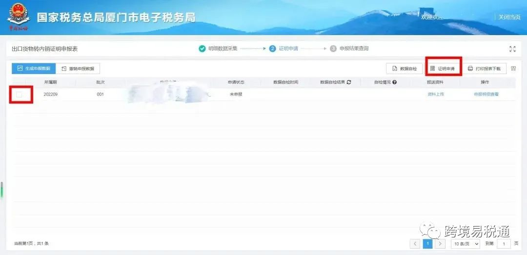 最后,勾选所申报的数据,点击“证明申请”就可以了。