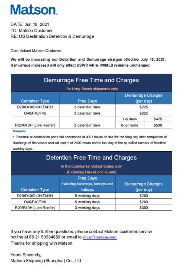 美森7月15日后仓租柜租涨价通知
