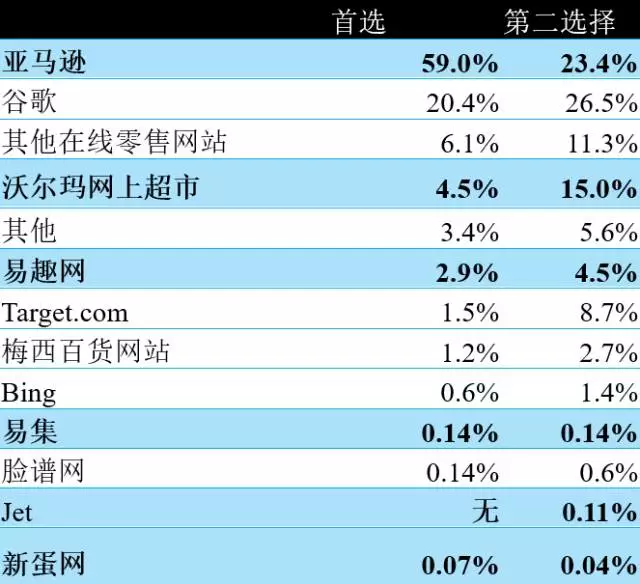 在亚马逊比在谷歌上开始进行在线产品搜索和在线购物者多的事实表明该电子零售巨头在电子商务领域日益增长的主导地位。但是,零售商和品牌在一系列问题中应该注意到消费者标注购物首选、第二选择或通过购物软件的所有其他交易平台。更有趣的是允许受调查者书写答案,许多人在小型交易平台如Jet.com和新蛋网上写答案。对于交易平台卖家来说这是一个好消息。