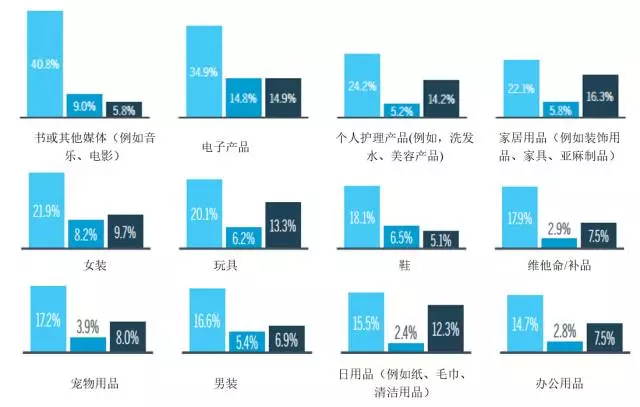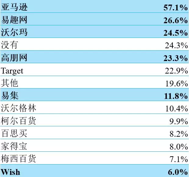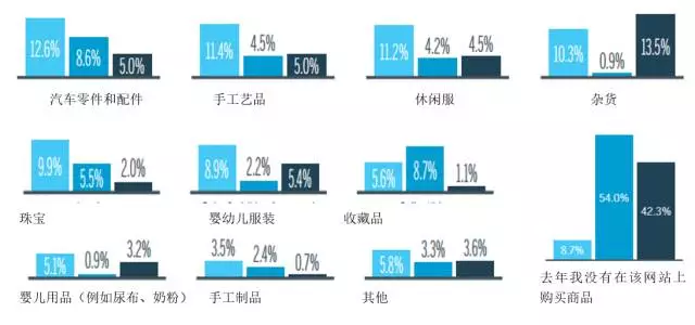 去年您曾在亚马逊、易贝或沃尔玛网上超市购买哪种产品?