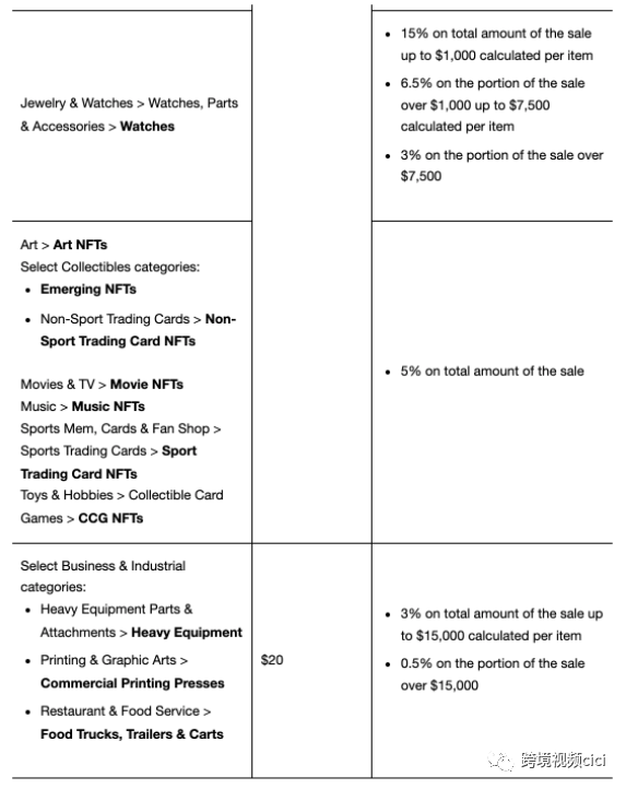 支付处理费:由于 eBay 现在要求卖家使用他们的托管支付系统,因此这笔费用包含在“最终价值”费用中。