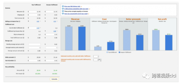注意:“Your Fulfillment” (FBM) 的总成本不包括运费。如果您选择出售 FBM,则在确定利润率时必须考虑运输费用。