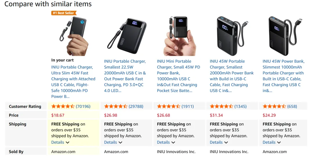 当消费者点击 “Compare with similar items(与相似商品对比)” 时,Rufus快速提供对比内容,Rufus还决定了哪些商品算“相似”,强调哪些属性值得被重点比较。