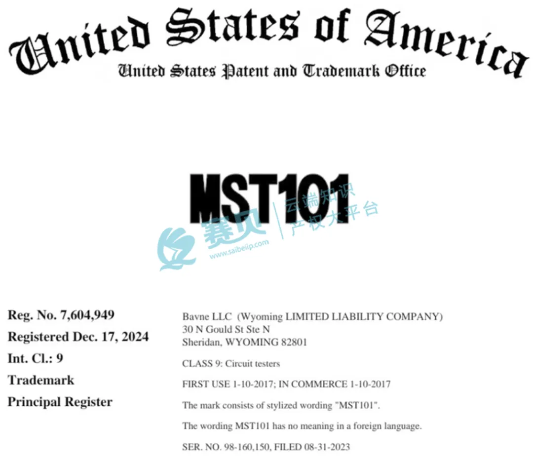 本次TRO案件核心依据原告提交的诉状及商标注册文档,维权核心围绕“MST101”商标侵权展开,具体商标信息如下: