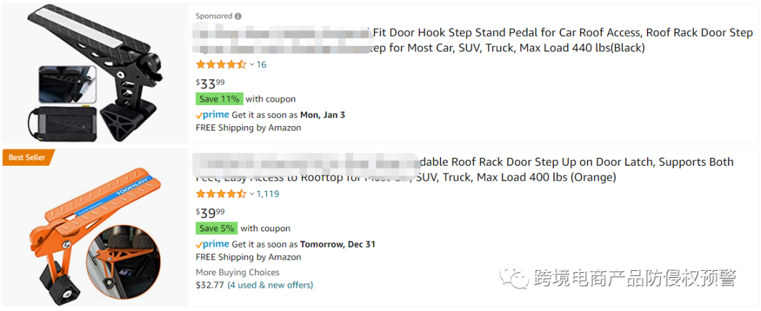 【汽车车门锁扣脚踏】在亚马逊美国站上的(发明专利)防侵权预警449