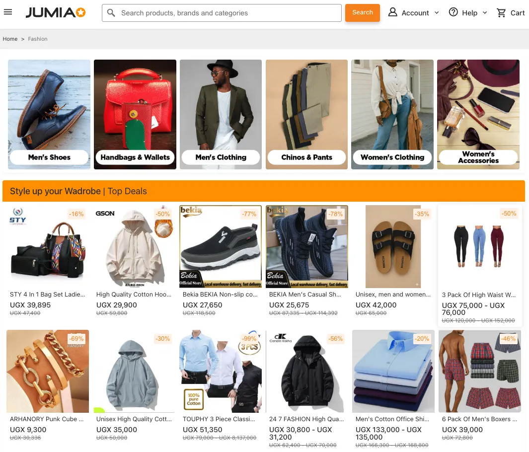 服装是乌干达时尚电商市场的核心品类,Jumia平台数据显示,当地消费者已逐步转向线上选购款式多样、质量可靠的全新服饰,男女装、鞋包配饰的市场需求持续走高。