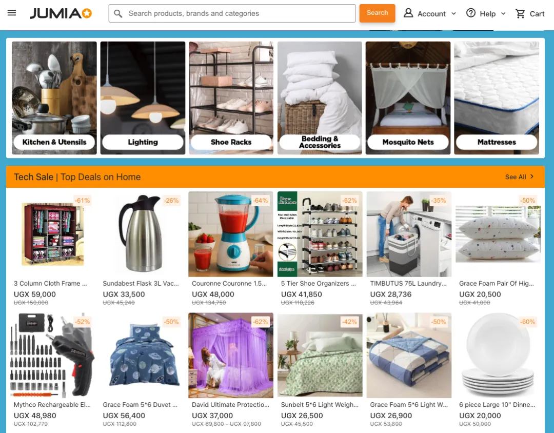 Jumia自2016年进入乌干达市场后,迅速占据主导地位,成为当地头部购物网站,并在本地构建起从平台架构到产品、物流、支付的完整闭环链路。