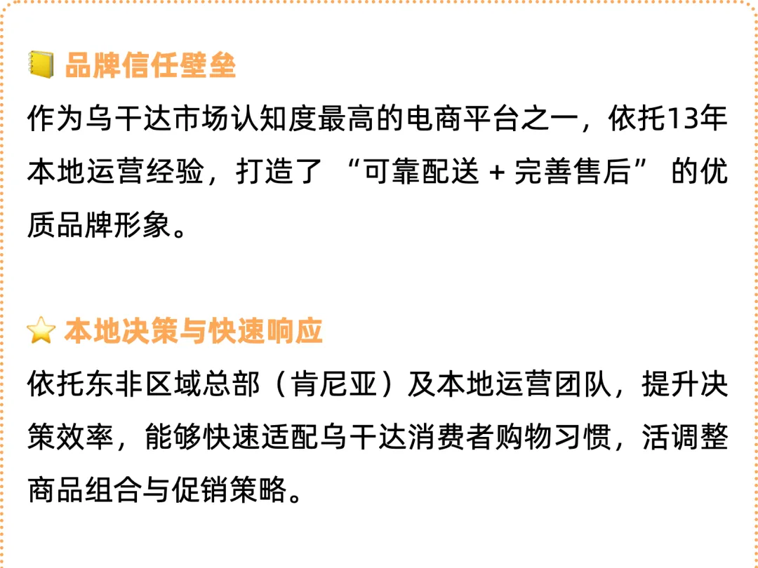 Jumia拥有以下四大核心优势,可以为中国卖家迅速布局乌干达进行保驾护航: