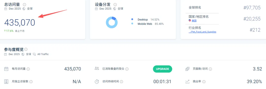 这意味着大多数用户是通过主动搜索或记忆进入官网,而非依赖广告引导。这一数据侧面印证了品牌在用户心智中已建立起稳定的信任感与内容记忆点。月访问量达到43万,官网不仅是交易平台,更是品牌内容的承接枢纽与信任放大器。