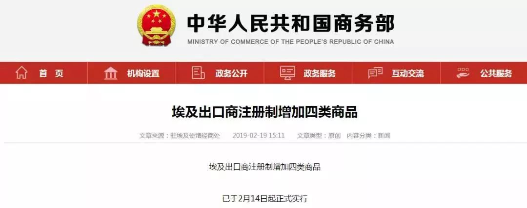 埃及出口商注册制增加四类商品已于2月14日起正式实行。