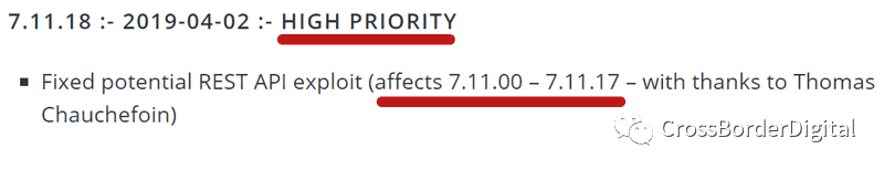 WPScan 漏洞数据库报告了该漏洞:版本7.11.00到7.11.17容易受到未经身份验证的 SQL 注入攻击。WP Google Maps更新日志将最近的更新列为高优先级,如图所示: