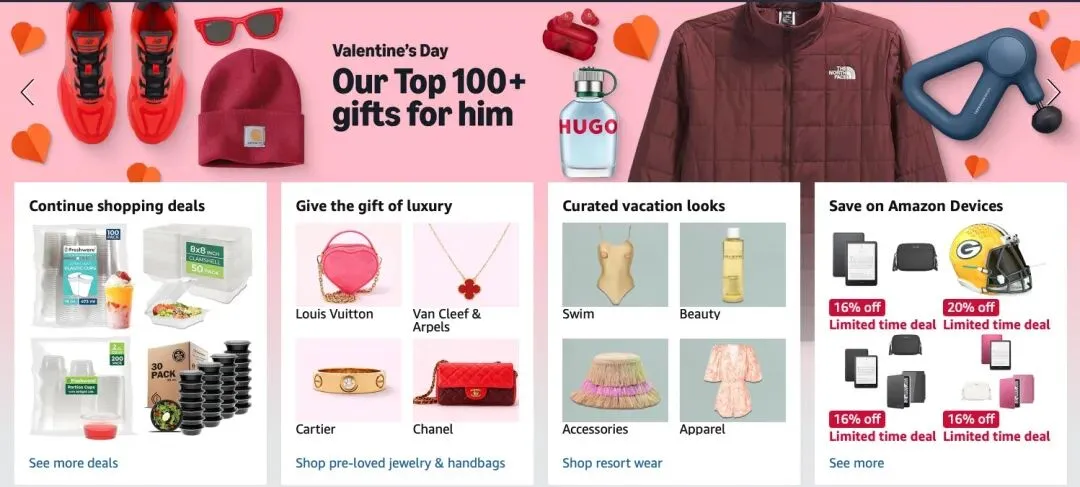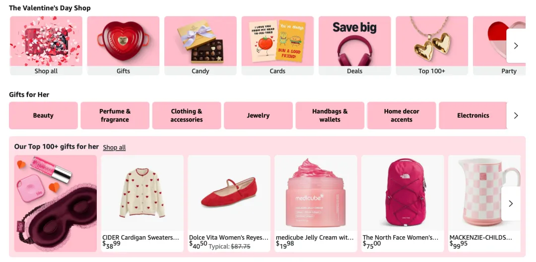 亚马逊同样用了大量资源在推情人节礼品。
