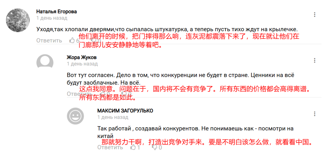 部分网友坚决反对已退出的品牌重返俄罗斯,因为这些品牌离开时毫不留情。有人指出这些品牌的存在,会阻碍俄罗斯本土产业的发展。