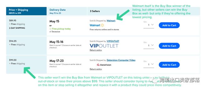 了解沃尔玛Buy Box和亚马逊Buy Box之间的区别,将有助于你在每个平台上进行相应的定价,并在每个平台上列出你整体盈利能力最好的产品。