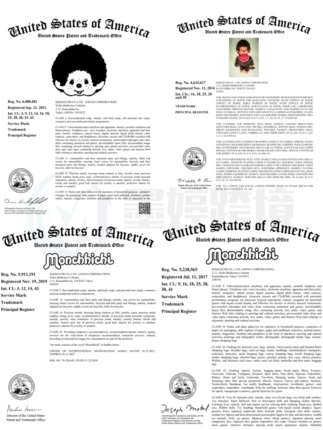 Sekiguchi Co., Ltd. 长期致力于对蒙奇奇形象的全球知识产权保护,在多个国家和地区注册了商标与版权。除了毛绒玩具,蒙奇奇形象也被广泛应用于文具、家居、小饰品等授权商品中,成为日本代表性IP之一。