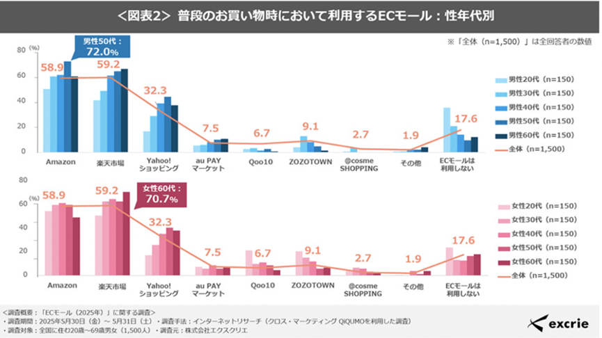 (数据来源:日本EXCREE株式会社《2025年电商平台使用情况报告》)