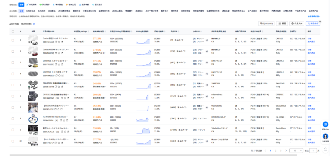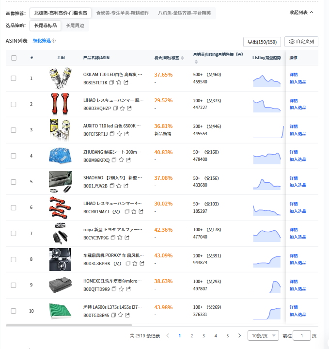 ▷系统将不再泛泛地推荐“汽车配件”,而是基于真实的日本市场数据和车型库,为您挖掘出超过2500个高度匹配的产品机会,并精准定位到解决核心痛点的“刚需件”(如下图)。
