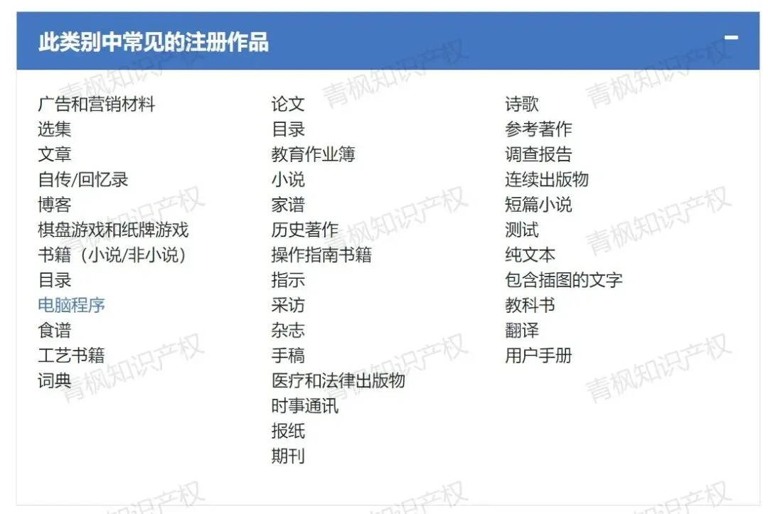 实际美国的版权类型列的很详细: