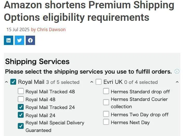 亚马逊物流政策持续趋严,2025年新政策要求卖家必须100%使用认证承运商并提供有效的物流追踪号,且订单取消率需保持在0.5%以下。