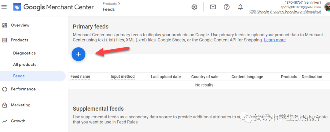 接下来我们来到Google Merchant center 后台,点击左侧的Products选项来进行产品的上传