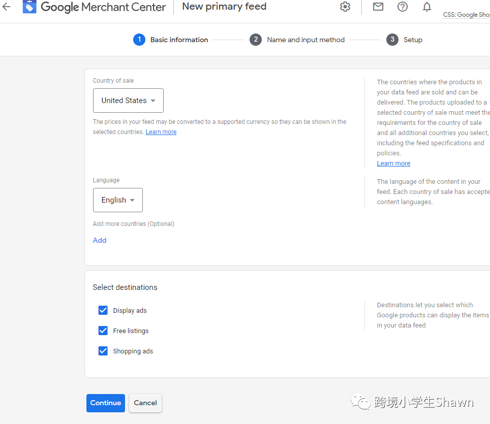 谷歌商家中心(Merchant Center)注册账号,注册过程很简单,只需要提前准备好一个Google邮箱登录即可,登录后按照网站的官方提示完成基本信息填写。