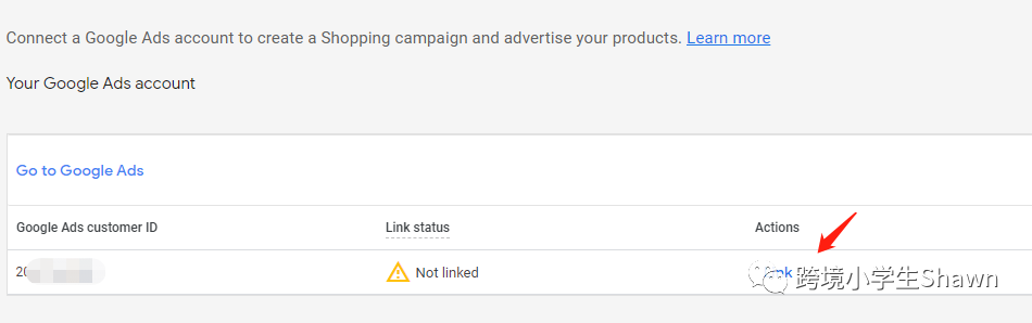 接下来我们将Google merchant与Google Ads相关联,回到 Google merchant中