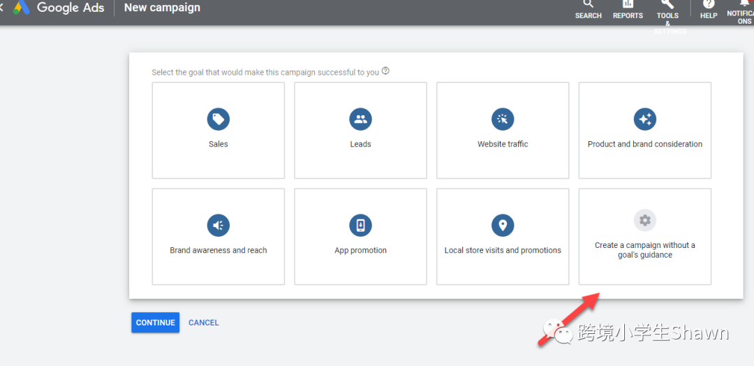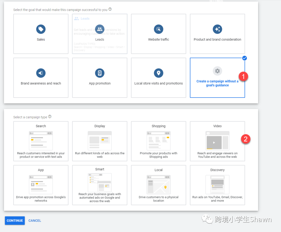 首先我们还是来到Google ads 后台, 点击创建Campaign 选择 Create a Campaign without a goals guidance,然后接下来选择创建video 广告