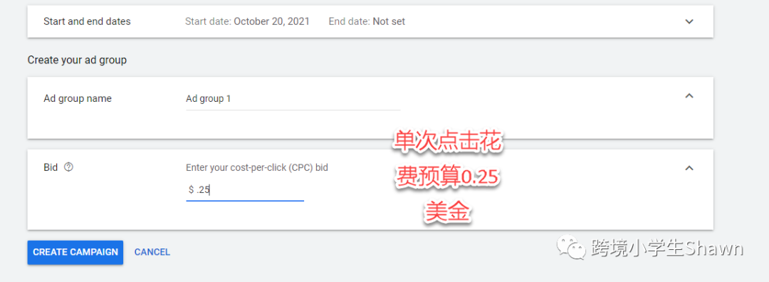 接下来再选择每日的投放预算,一般在5~10美金开始都可以。