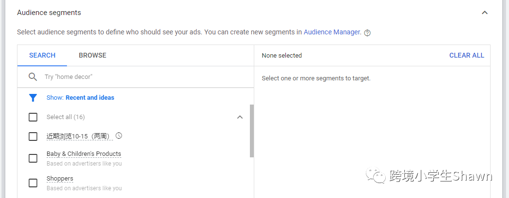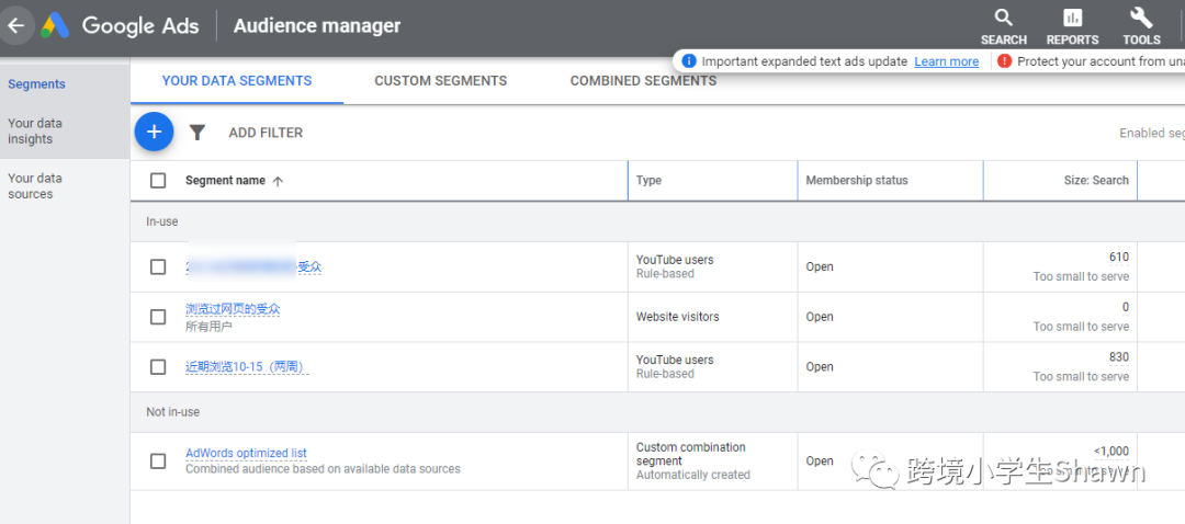 Audience segments -可以在其中找到符合你产品相关的兴趣人群