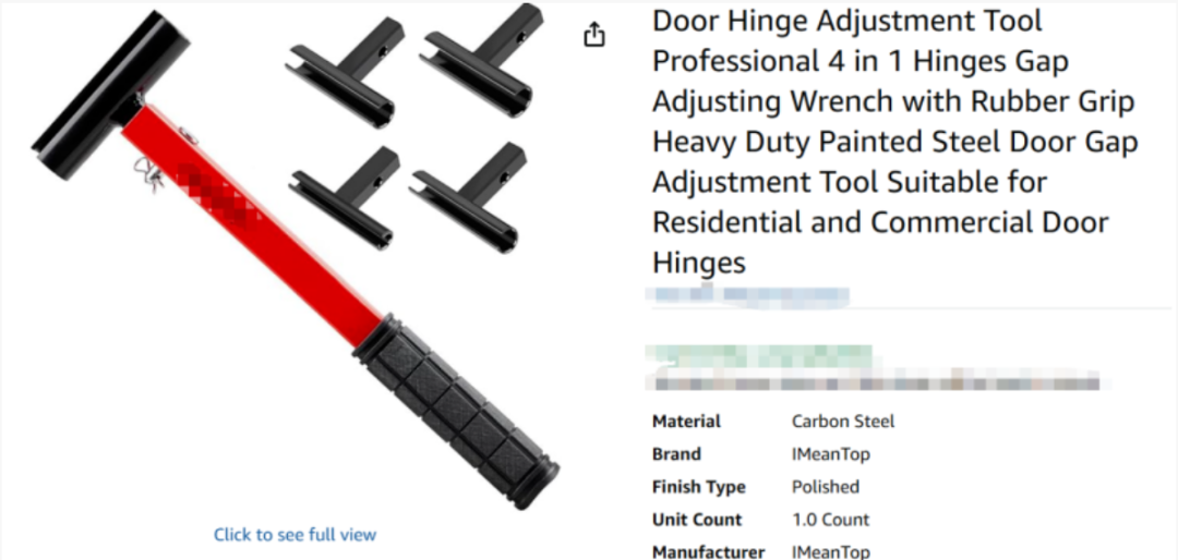 原告Yuting Chen是中国人,此次维权的铰链调节扳手产品的专利所有者。这款产品主要用于精确调节门与柜子之间的缝隙,确保门板对齐,减少因缝隙不均带来的异响、摩擦和磨损。能适配从小型柜门到重型入户门等多种铰链类型,实用性很强。