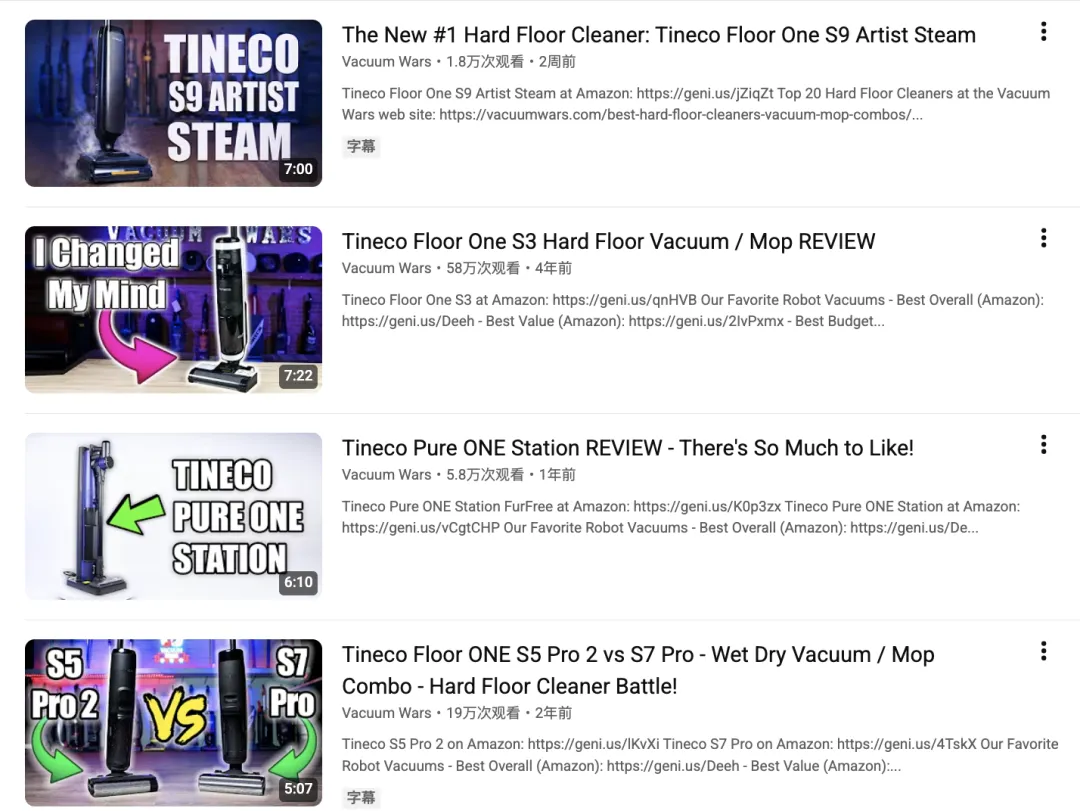 Vacuum Wars,正是Tineco在美国市场重点合作的一位代表型达人。