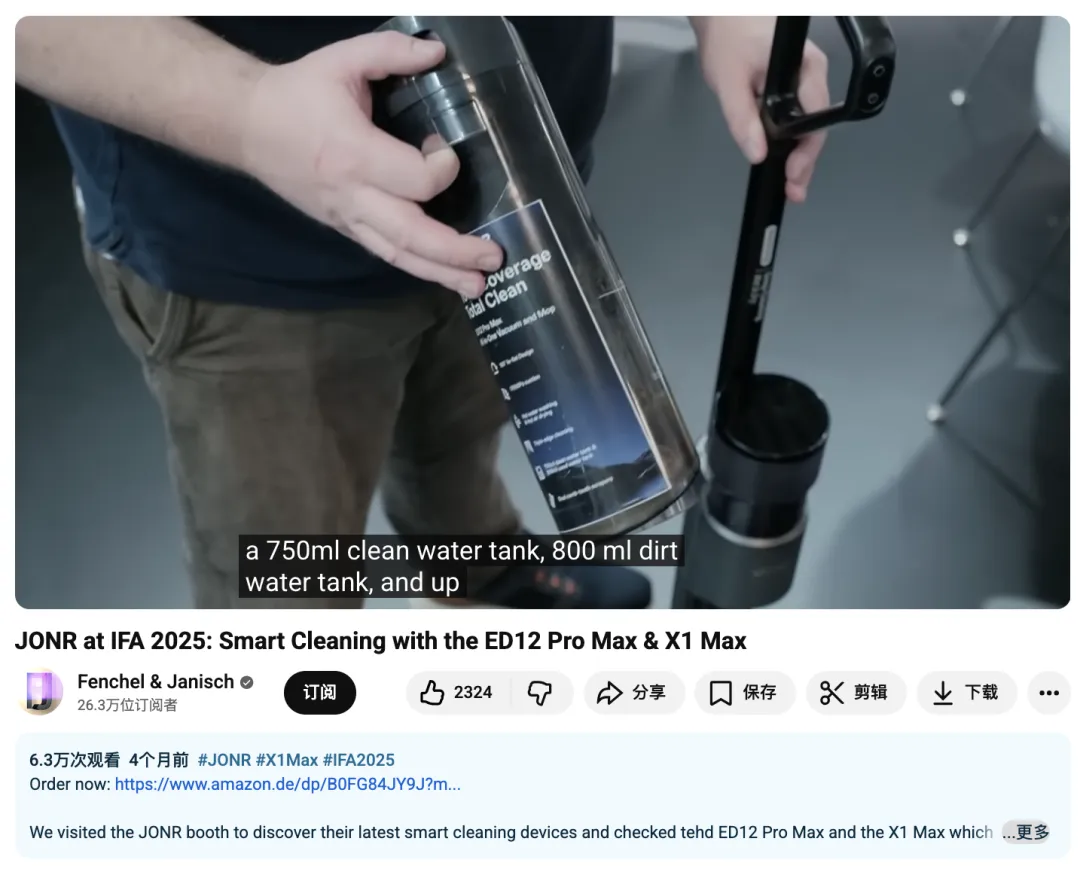 这场合作不仅借助 Fenchel & Janisch 的粉丝群体与传播力,为 JONR 扩大了海外曝光,更通过专业、真实的现场实测,有效提升了品牌海外信任度与用户购买意愿,助力 JONR 借助 IFA 展会契机,成功渗透海外科技消费市场,实现品牌与销量的双向提升。