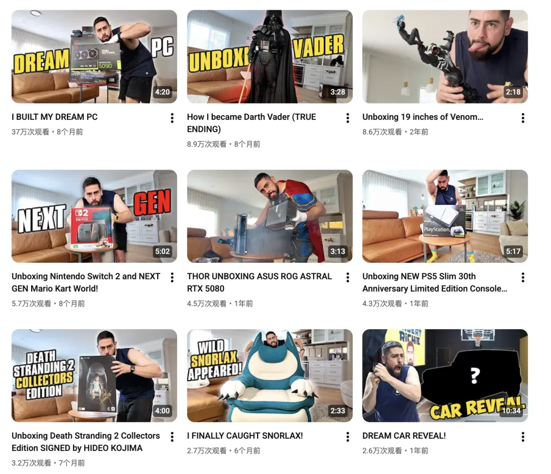 从达人定位与风格来看,Insert Richie 主打开箱、拆装、试玩类内容,覆盖电竞家具、数码产品、潮玩等多个品类,视频偏短平快,擅长用夸张的表情和生活化演示,将复杂或冷门产品变得有趣易懂。