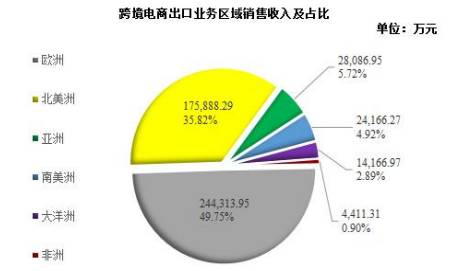 公司跨境电商出口业务的主要销售区域为欧洲和北美洲,在当地拥有一定的规模和品牌优势。报告期内,欧洲和北美洲占公司跨境电商出口业务收入的比例为49.75%和35.82%,两者合计占跨境电商出口业务收入的85.57%。