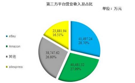 公司在自营平台快速发展的同时,依托第三方平台,把高性价比的中国产品直接销售给海外终端用户。报告期内,公司第三方平台共计实现营业收入144,608.12万元,同比增长62.83%,占环球易购跨境电商出口业务收入的35.88%。公司第三方平台收入主要来自于eBay、Amazon等第三方平台,凭借公司多年积累的第三方平台运营经验、成熟的经营管理团队以及高效的供应链管理体系,第三方平台收入逐年保持快速增长。