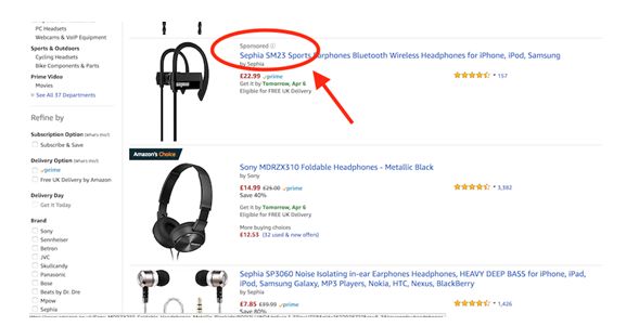 标题搜索广告显示在搜索结果的顶部,每个广告显示3个产品。如果亚马逊认为其中任一一个产品不合格,你的广告会被暂停。