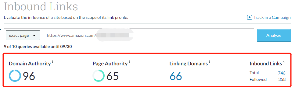先从亚马逊上找到你要监测的竞品的链接,复制下链接,输入Moz的搜索框。