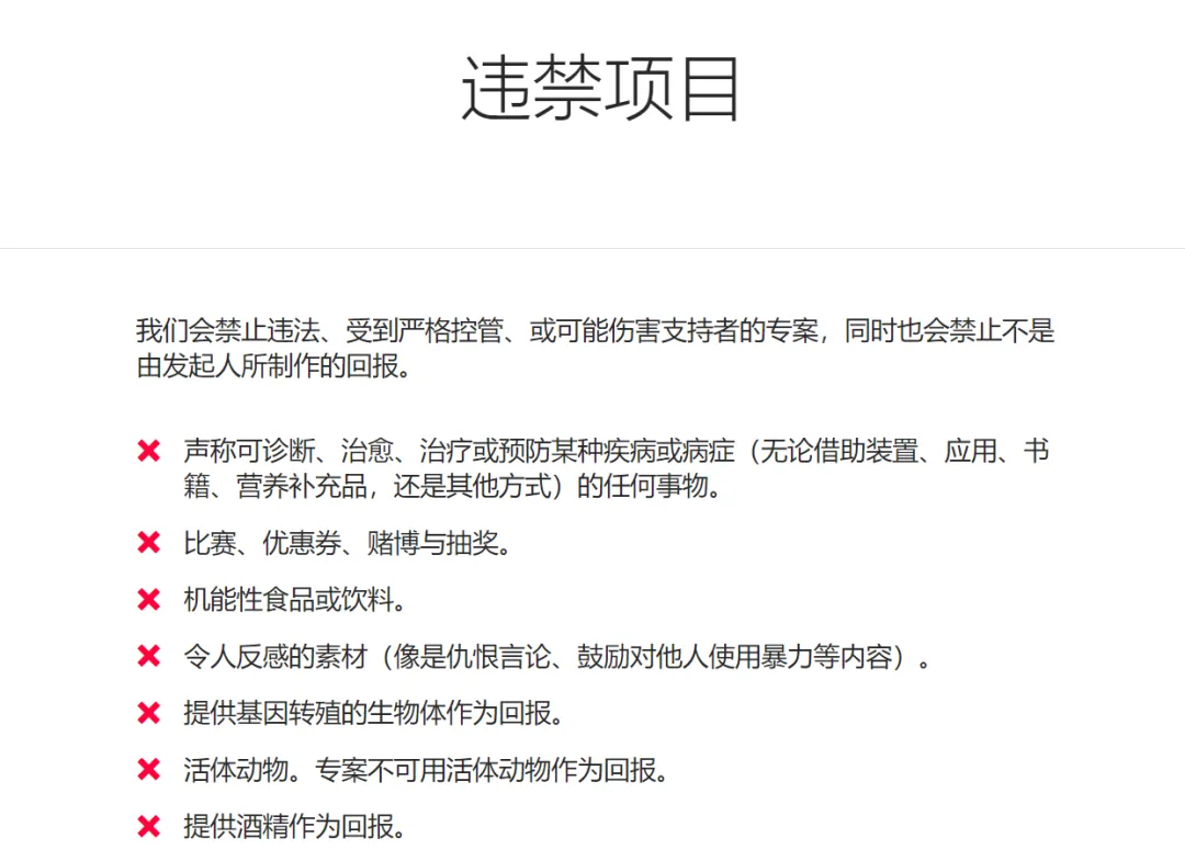 KS禁止的项目清单,如下图