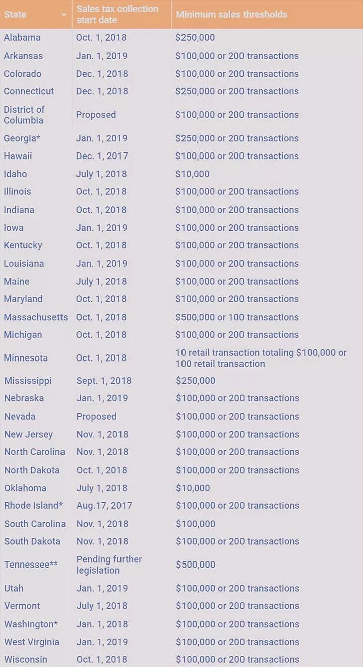 据外媒报道,科罗拉多州和康涅狄格州的在线销售税法将于2018年12月1日生效,在线零售商就要开始为两州消费者的在线订单征收和代缴销售税了,也就是很多人所说的“电商税”。
