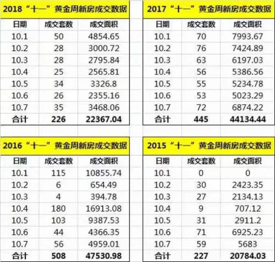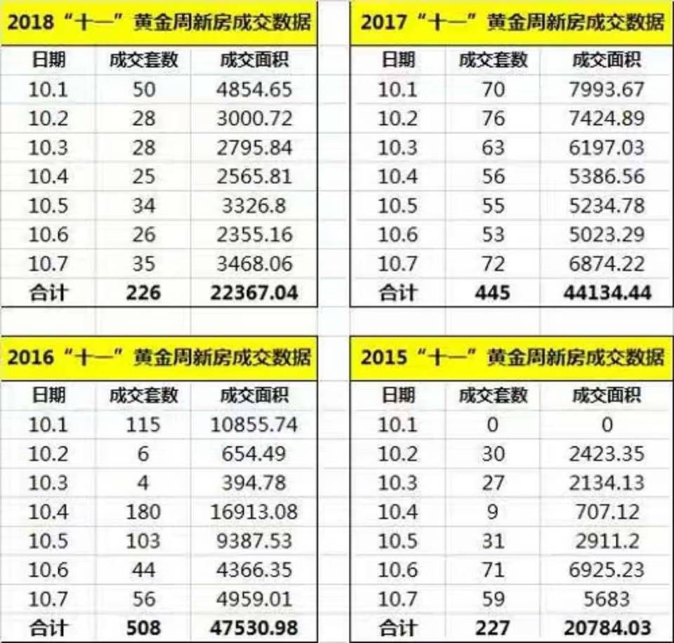 图为深圳“十一黄金周”近几年的成交数据,我只能说“2018简直是扶不起的阿斗”。。。