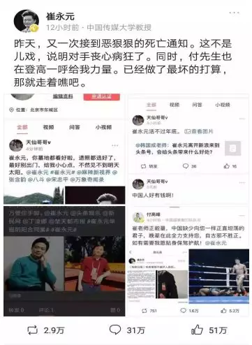 然后回到“国事”,最近我们听过最多的人应该是中国传媒大学教授——崔永元,各大报纸、头条、新媒体、自媒体,甚至外国媒体,但凡有点正义的媒介和有点良知的人都在极力支持他,他的微博顿时突破500W关注,因为各种原因,只能转战头条,很多支持他的人纷纷下载头条进行声援和支持。