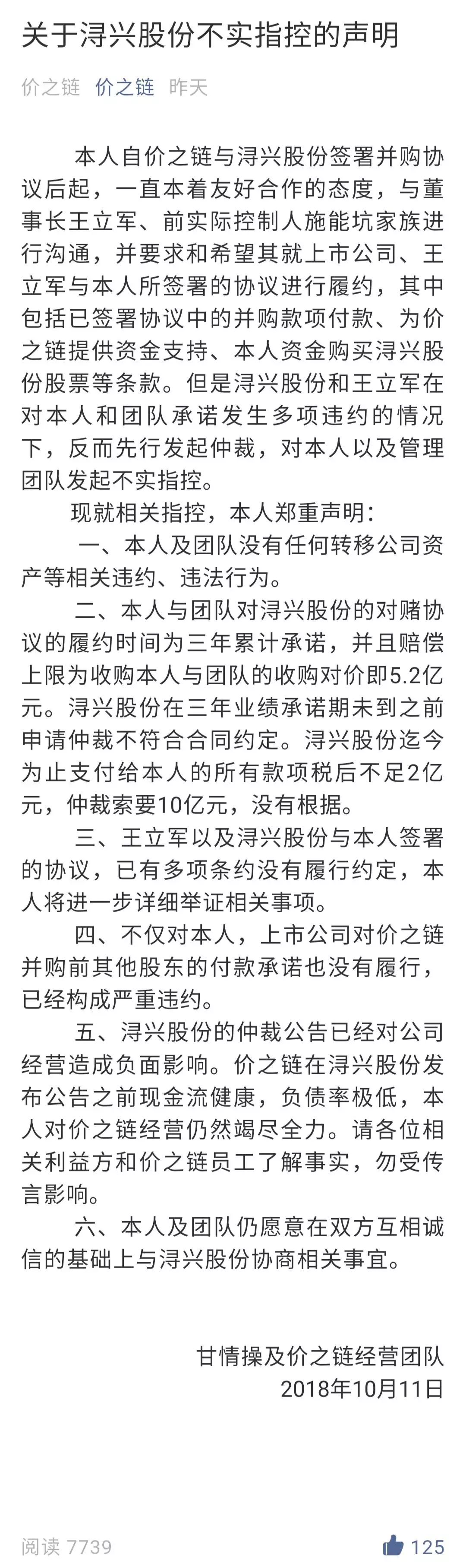 首先抛开之前本是合作伙伴的因素,站在任何一个角度和立场,我都应该支持,毕竟资本运作本身就是在对赌,赌是场对冲,最后可能也是一场空,要玩转资本,资本的本质还是风险和利益。生意和经营有高潮就一定有低谷,希望看到你再度重现辉煌的那天,为跨境电商树立好的榜样。