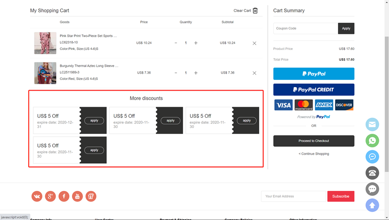 4、折上折:即可以与全场活动叠加,比如,全场活动买2件9.5折,同时输入优惠券可以在折扣上享受直减5美金优惠