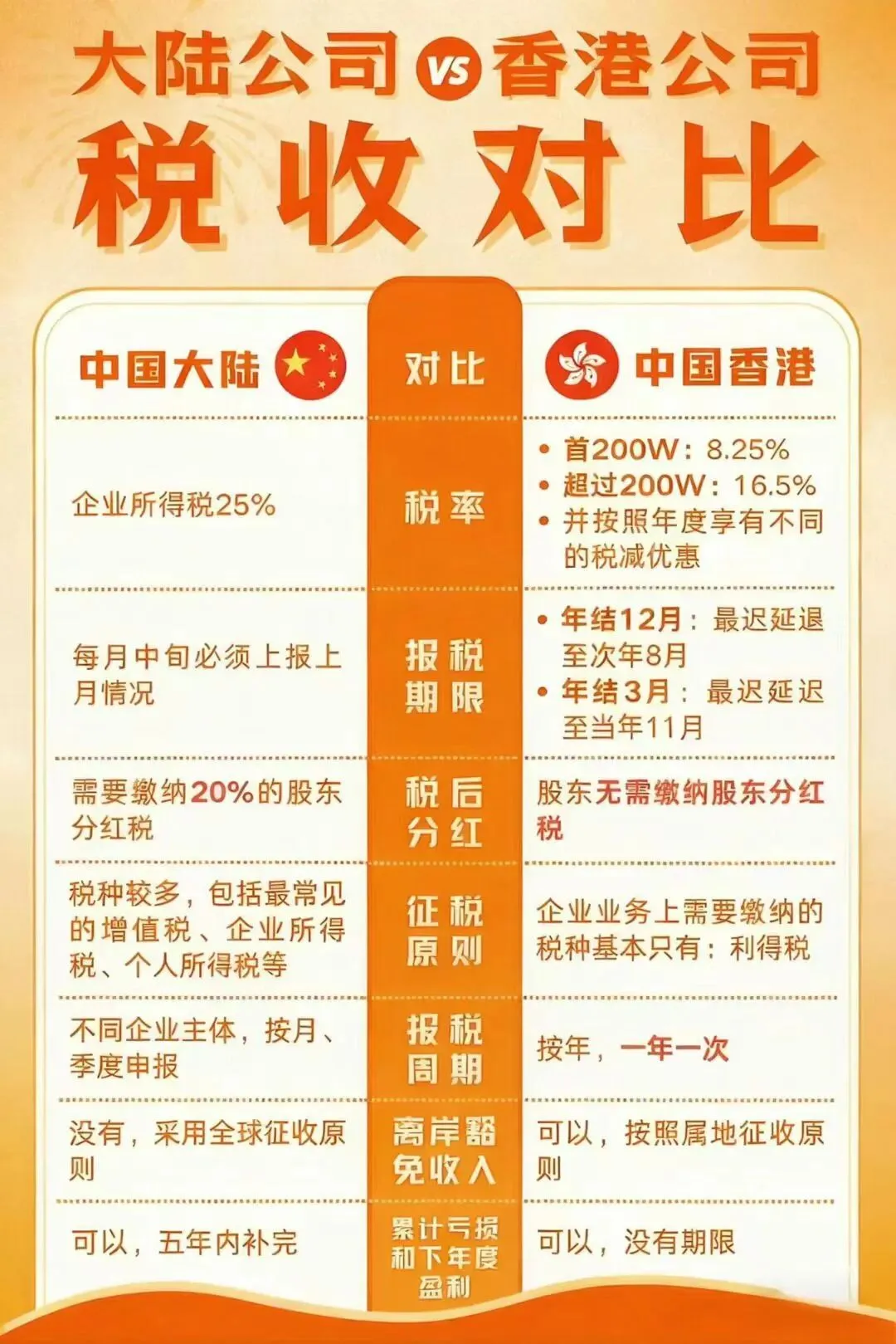 离岸豁免:如果你的业务(合同签订、订单处理、货物运输)都不在香港发生,可以申请“离岸免税”。相比国内25%的企业所得税,香港公司的利润留存能力简直是降维打击。